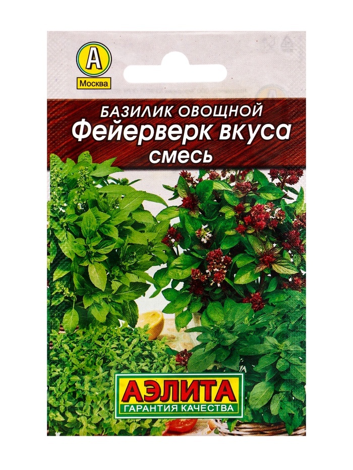 «Фейерверк вкуса» — смесь популярных видов базилика с разными оттенками вкуса и аромата. Хорошо растут на огороде, в теплице, на балконе и в комнате.