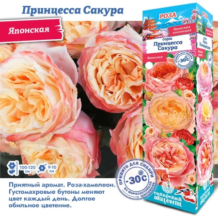 Цветение обильно цветёт с весны до осени. Цветы имеют нежный розовый оттенок, часто с лёгким белым или персиковым налётом. Цветки крупные, диаметром около 8–10 см, с густомахровыми лепестками. Обладает лёгким, сладким ароматом. Листья тёмно-зелёные, блестящие. Кусты достигают высоты 70–100 см.