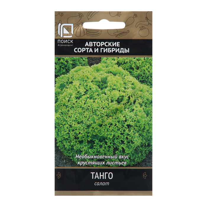 Салат Танго - необыкновенный вкус хрустящих листьев. Листовой сорт с рыхлыми кочанами. Ранний. Период от всходов до уборки урожая 40-45 дней. Имеет нежные, гофрированные, очень декоративные листья зелёного цвета. Розетка листьев очень плотная массой 160-180 г. Вкус нежный, без горечи. Сорт очень однороден. Устойчив к цветушности. Рекомендуется для потребления в свежем виде.