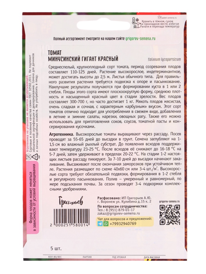 Среднеспелый, крупноплодный сорт томата, период созревания плодов составляет 110-125 дней. Растение высокорослое, индетерминантное, может достигать высоты до 2,5 м. Листья обычного типа. Для правильного развития растения требуется подвязка к опоре и пасынкование. Наилучшие результаты получаются при формировании куста в 1 или 2 стебля. Плоды этого сорта имеют плоскоокруглую форму, среднюю плотность и насыщенный красный цвет в стадии зрелости. Вес плодов составляет 300-700 г, но часто достигает 1 кг. Мякоть плодов мясистая, очень сладкая и сочная, с характерным «арбузным» вкусом. Этот сорт томатов отлично подходит для употребления в свежем виде, добавления в летние и зимние салаты, нарезки, овощных рагу. Также его можно использовать для приготовления соков, соусов, томатной пасты и консервирования кусочками.
